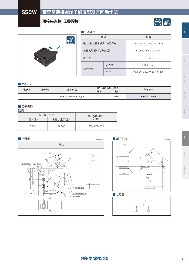 带套筒连接器端子的双向动作型。 SSCW系列型号:SSCW110102