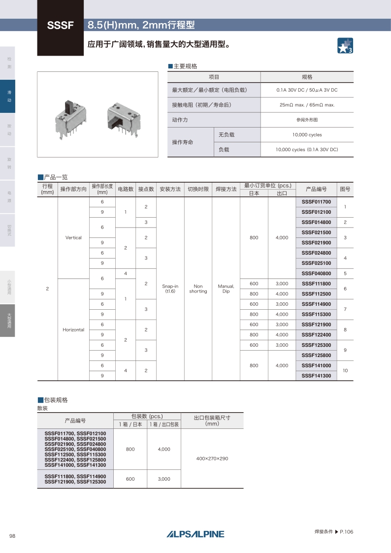 SSSF系列——ALPS滑动开关